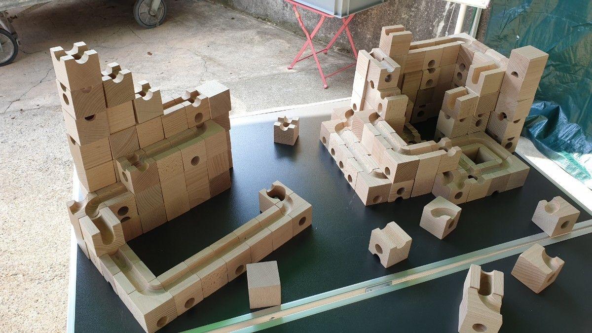 Die berühmten Cuboro-Murmelbahnelemente zum Selberbauen von immer neuen Bahnen faszinieren Jung und Alt.